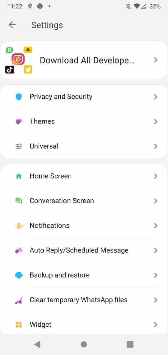 Загрузка статусов: встроенный загрузчик статусов позволяет загружать ваши любимые статусы, загруженные вашими друзьями, без использования сторонних загрузчиков статусов.